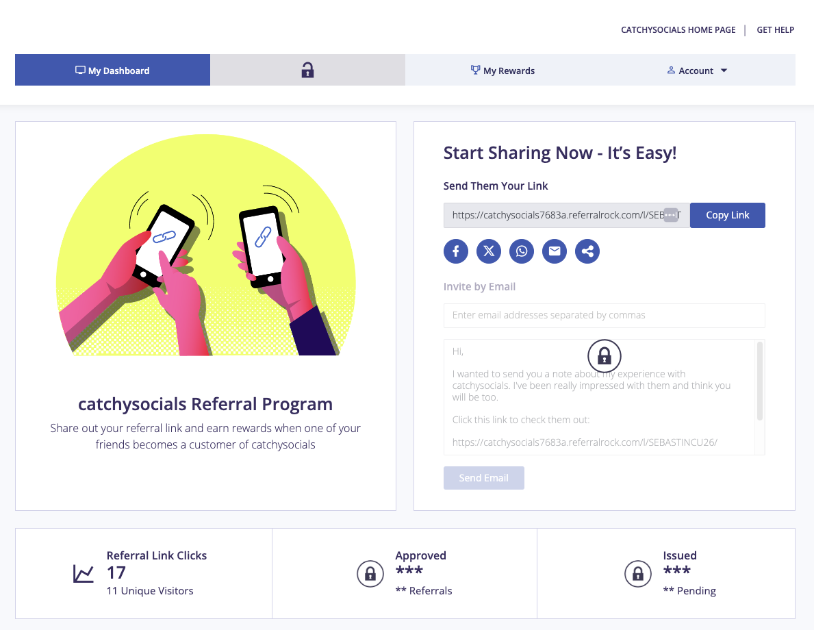 You can still share even when you aren’t logged in. But you won’t be able to see referral or reward data, and you can’t change account details, without a login.