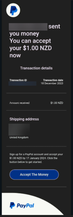 If you don’t have a PayPal account under your email address and rewards come through PayPal, you’ll need to create an account to accept the funds. Click on “Accept the Money” and you’ll be prompted to create the account.